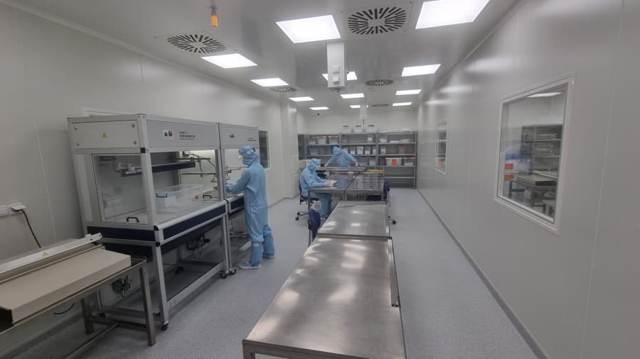 Unser Reinraum erfüllt die Anforderungen gemäss EN ISO 14644-1 Klasse 7 und GMP Klasse C.